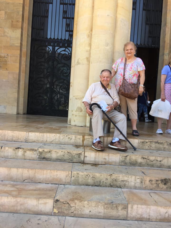![]() Baskinta - mom ’ s home town. ![]() ![]() Janette ’ s two granddaughters, Lara and Raheem. Lara, Raheem, Lina, Hikmat, Janette, Yvette, Richard. ![]() ![]() At table cousins Lina, Richard, Janette, Roseann, Walt, and Hikmat. The next photo is of cousins Lina and Richard entering the home where my mom grew up. Lina and her sister Mouna now own the house but no one lives there at this time. It had a first floor with two bedrooms, a kitchen and living room. Upstairs had the exact same. Most homes are like that with family members live on one floor with their spouse and childen on each level. Here is a photo of my cousin Lina and uncle Fouad at the house. And a photo of uncle Youssef with Yvonne Trad Kfoury, daughter of our grandma ’s sister Makake Karam Trad.