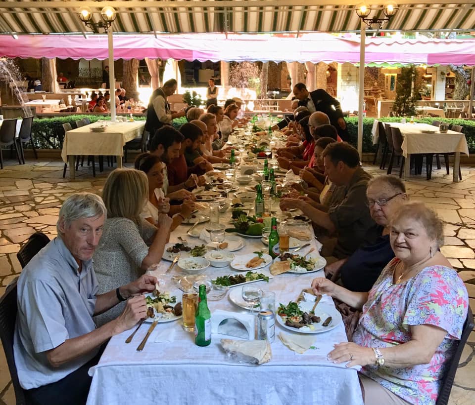 We Went to the mountains and had a marvelous luncheon at Orca in the mountains hosted by my two cousins, daughters of Janette, Lena and Memo. There were 12 and The family was delightful. And it happened my cousin Mariereine, was there so I was able to meet her. Her grandmother is my grandmother ’ s sister Malaki. Malaki ’s daughter Yvonne ’ s daughter is Mariereine. I received gifts from Lina, Ovilia and Lena. Again everyone was very gracious. The food was exceptional, and our stories and anecdotes were reinforced by the arak we sipped.